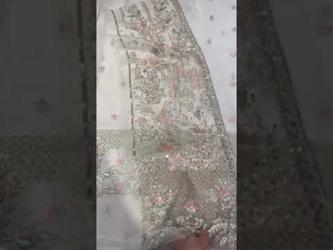 Anya is a handcrafted artistic piece dipped in a white hue celebrating the glory of wedding festivities. A glamoured organza paneled long shirt executed with touches of pink floral 3D work and katdana over the whole canvas further glorified with sequenced pearls and crystals reviving the bridal beauty. It is paired with a magnificent raw silk pants designed with small motifs over it and a gleaming net dupatta finished with scalloped organza crafting a quintessential romantic piece to perfection.